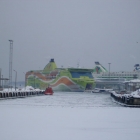 … а вот такие паромы Таллинка стоят в порту :) большие такие :) в терминал заходили и там только прибыл паром, много финов приехало…